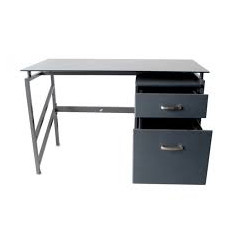Esta secretária combina estrutura metálica resistente com tampo em vidro e acabamento em carvalho (oak), oferecendo um visual moderno e acolhedor para qualquer espaço de trabalho ou estudo.